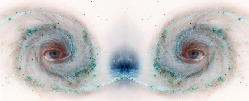 I Galakse Fjes ønsker jeg å forbinde det menneskelig med det uforståelig store, som jeg finner i bilder av galakser og universelle fenomener. Fotoserien består foreløpig av elementer fra universet blandet med menneskeøyne. Jeg har i mange år vært dypt fascinert av de ulike mønstrene og ”vesener” som finnes i universet. For meg er universet et levende, men noe uforståelig vesen. Jeg ønsker å forbinde betrakteren med glede og åpenhet i forbindelse med universet. Universet er stort og for min bevissthet er det deilig og skremmende.